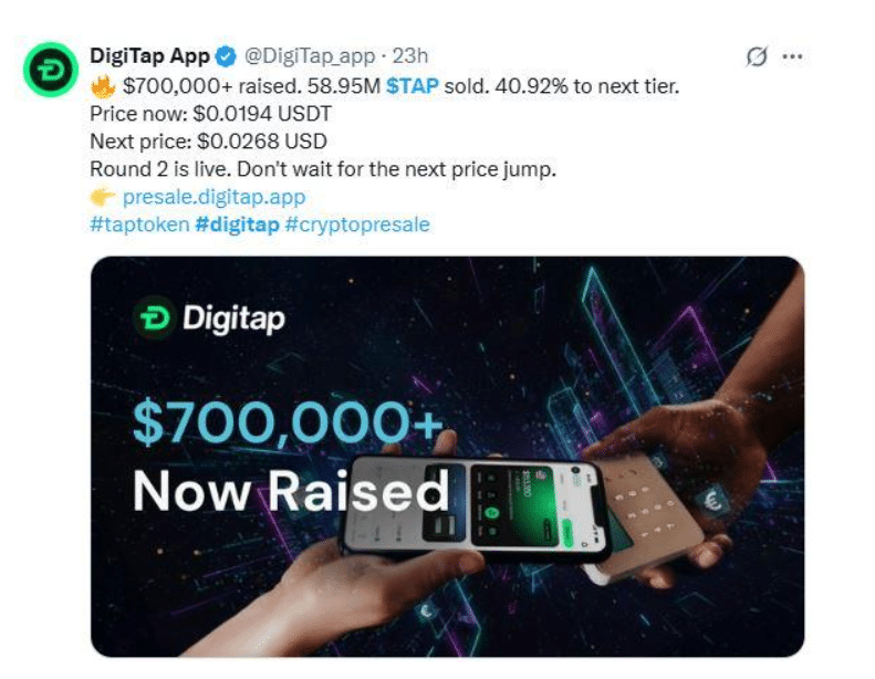 Digitap has raised over $750,000 and sold more than 60 million TAP tokens, representing 40.92% of the current presale round. This isn’t just a temporary hype: it’s proof of market confidence.