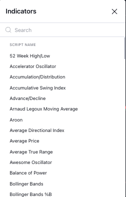 4. Select the indicator from the dropdown list. It will automatically be added to your chart.