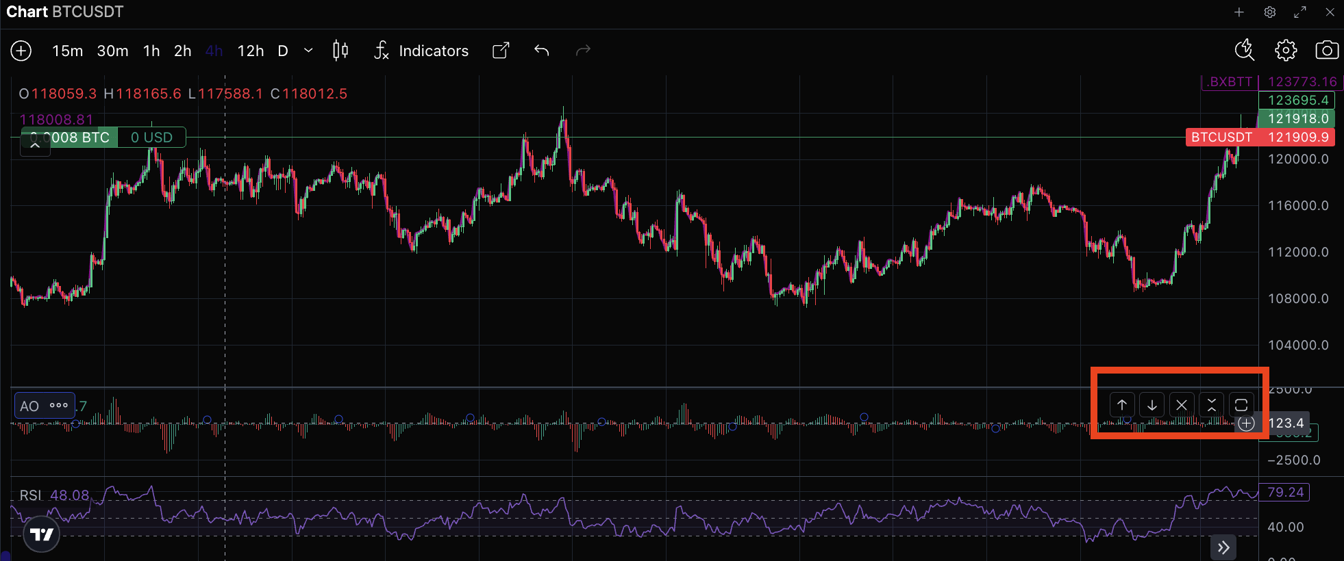 Additionally, you can use the buttons on the right to perform quick actions such as repositioning your indicators or minimising them.